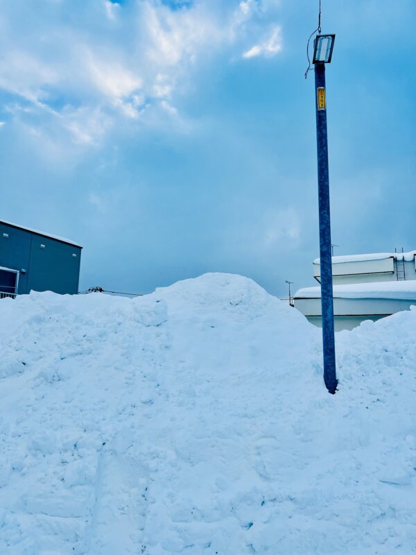 踏み切りを渡って線路を見たんだけど、本当に線路横の圧雪が酷かったよ、よく電車を走らせてるなって思ったよ。